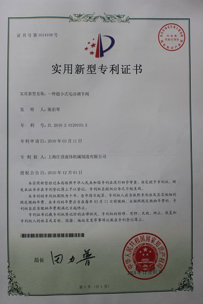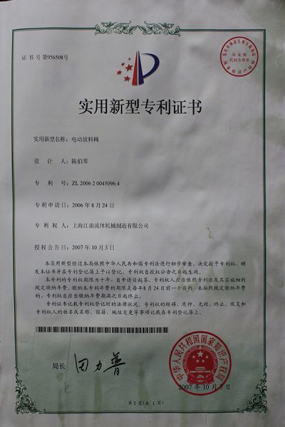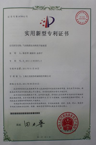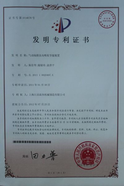 气动隔膜泵自动液位控制设备实用新型专利证书